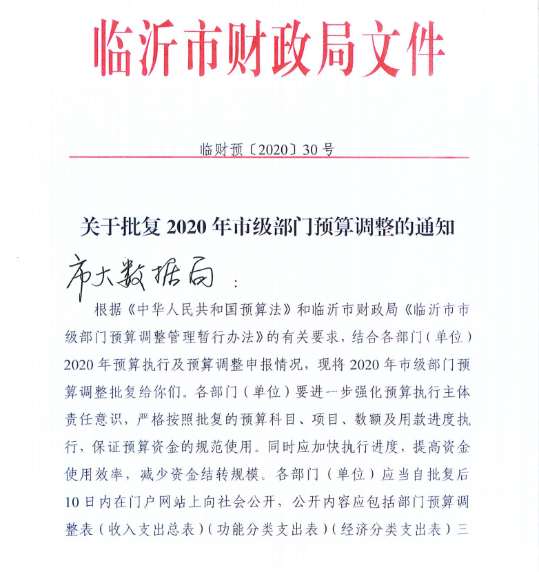 | 标 题 | 关于批复2020年市级部门预算调整的通知 | ||