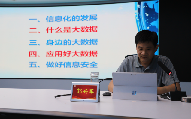 本期活动由市局数据应用管理与安全科科长郭兴军同志主讲。他以《大数据应用管理与安全》为题,详细讲解了信息化的发展脉络,大数据的定义、内涵、发展过程,并联系智慧教育、智慧医疗、智慧水利、智慧交通等大数据应用的生动案例和典型应用场景,重点介绍了大数据创新应用和加强大数据安全管理的重要意义和主要做法。整个讲解系统全面、深入浅出、生动具体,既有丰富的理论知识,又紧密结合具体工作实践,为全系统干部职工上了一堂精彩的大数据基础知识教育和普及课。